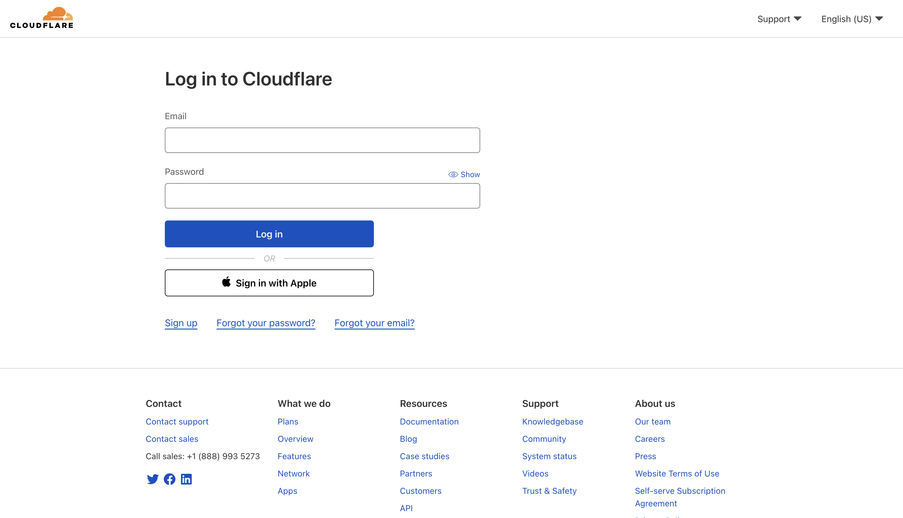 Шаг 1: Войдите или зарегистрируйтесь на сайте Cloudflare, используя свой адрес электронной почты. Окно входа должно выглядеть примерно так.