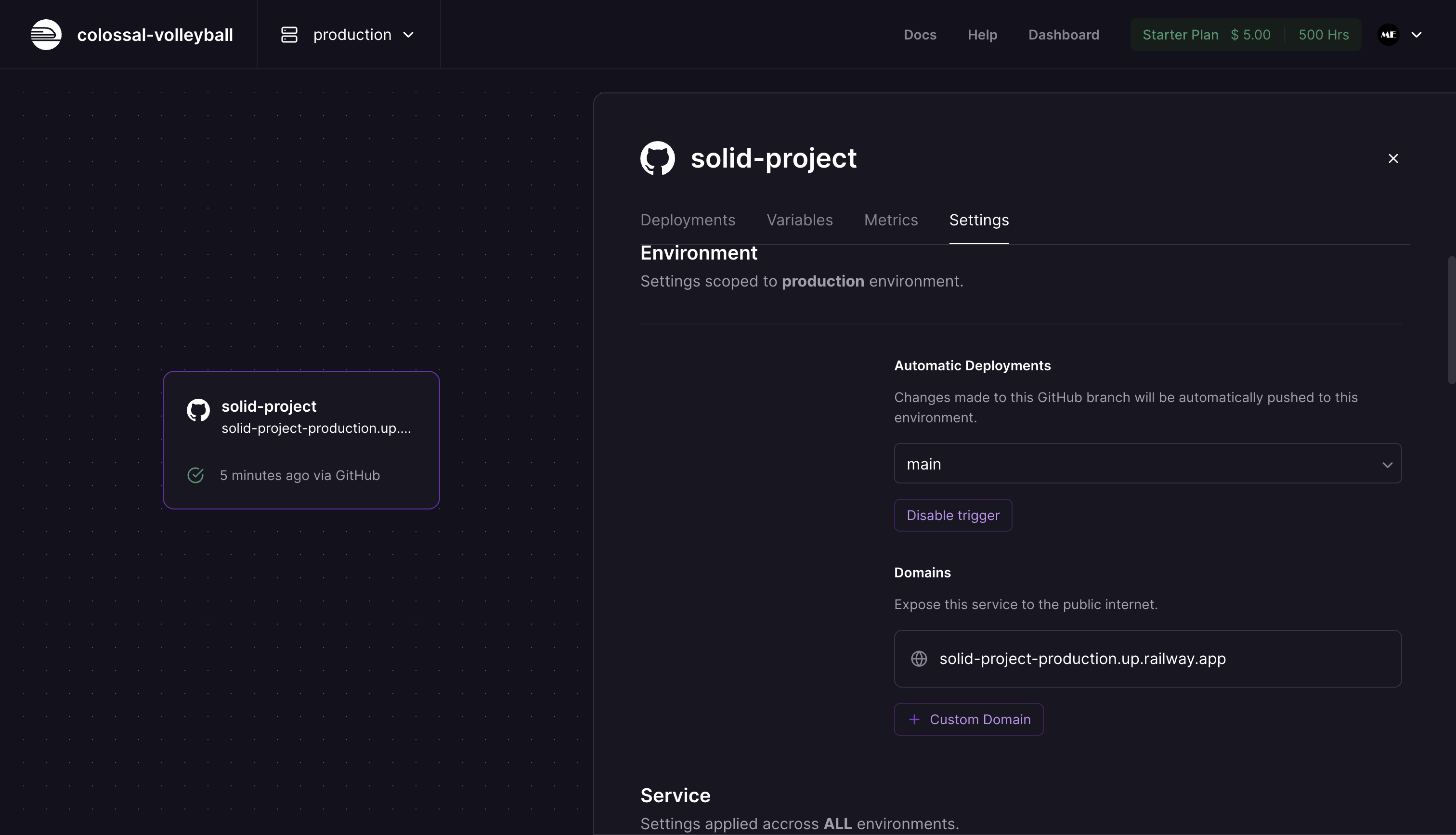Здесь мы будем использовать Railway для развертывания нашего проекта Solid.