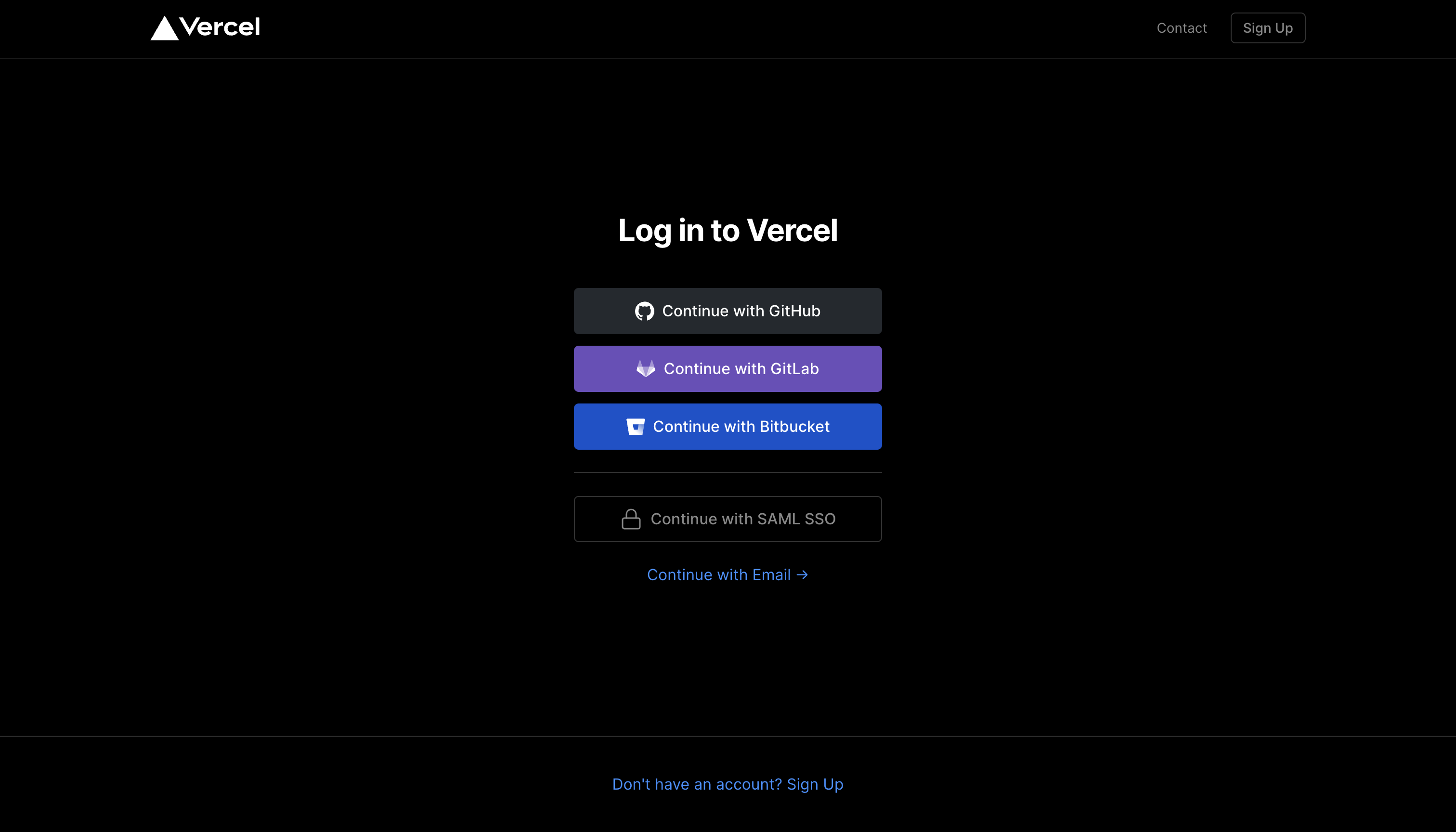 Шаг 1: Войдите или зарегистрируйтесь на Vercel, используя свою учетную запись GitHub. Страница входа должна выглядеть примерно так.